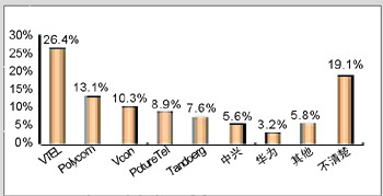 各品牌的認(rèn)知度與其市場銷售情況息息相關(guān)。例如,VTEL是最早進入中國市場的視頻會議廠商,并在相當(dāng)長的時期內(nèi)占據(jù)市場領(lǐng)先地位,取得顯著的品牌認(rèn)知度是有其廣泛用戶基礎(chǔ)作為支撐的;Polycom雖然從1998年才開始進軍中國市場,但在基于IP的視頻會議系統(tǒng)的市場爭奪中取得較好的成績;PictureTel已經(jīng)被Polycom收購,品牌認(rèn)知度也相對較低;而國內(nèi)品牌中興、華為剛剛起步,也很難達(dá)到較高的認(rèn)知度。