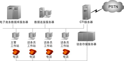 CTI服務器是一臺與交換機相聯(lián)、通常內(nèi)插CTI板卡的計算機,它通過接收來自交換機的事件/狀態(tài)消息和向交換機發(fā)送命令,實現(xiàn)計算機對整個呼叫中心的全面管理。同時,CTI服務器屏蔽了交換機與計算機之間復雜的通信協(xié)議,向上提供統(tǒng)一的編程接口,使開發(fā)人員能方便地開發(fā)呼叫中心的各類應用。CTI服務器一般由電話服務單元、安全數(shù)據(jù)庫和電話服務庫等組成,實現(xiàn)同步語音與數(shù)據(jù)的傳送、協(xié)調(diào)語音與數(shù)據(jù)的轉(zhuǎn)移、智能路由等功能。