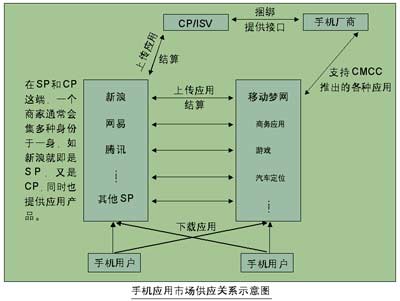 自推出2.5G、3G網(wǎng)絡以來,中移動、聯(lián)通開始對手機應用市場傾注了更多的關注。中移動首先推出了移動夢網(wǎng),為第三方軟件開發(fā)商提供了與手機用戶直接接觸的平臺。而第三方軟件的出現(xiàn),預示著手機應用市場銷售模式全面的改觀,除了必要的應用,如電話簿、短信平臺,大部分應用都可以不再預裝到手機中,而是由消費者自主選擇,通過網(wǎng)絡下載獲得。