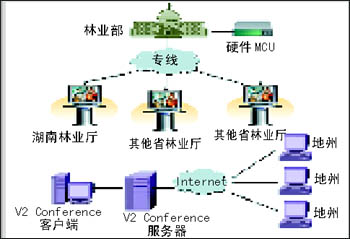 湖南省林業(yè)廳是省政府行業(yè)電子政務(wù)系統(tǒng)的示范單位,非常重視計(jì)算機(jī)網(wǎng)絡(luò)平臺(tái)上的各種軟件應(yīng)用。為了減少會(huì)議支出,提高辦公效率,湖南省林業(yè)廳經(jīng)過廳務(wù)會(huì)研究決定,希望充分利用全省十四個(gè)地州市現(xiàn)有的計(jì)算機(jī)和音響設(shè)備建立全廳的網(wǎng)絡(luò)視頻會(huì)議系統(tǒng)。在經(jīng)過公開競(jìng)標(biāo)后,V2產(chǎn)品憑借著其優(yōu)越的性能價(jià)格比和售后服務(wù)保證,成功中標(biāo)。