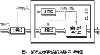 從功能上,調(diào)節(jié)器可分為計量器(meter)、標(biāo)記器(marker)、整形器(sharper)和丟包器(dropper)。