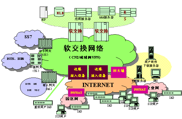 對(duì)于部署在專(zhuān)網(wǎng)上的TG及AG/部分IAD設(shè)備 當(dāng)用戶(hù)發(fā)起業(yè)務(wù)請(qǐng)求時(shí),網(wǎng)關(guān)設(shè)備將根據(jù)預(yù)設(shè)的SS IP地址將呼叫送至相應(yīng)的SS。