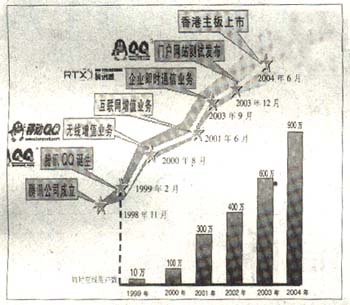 因此,2005年騰訊將采取“一橫一豎”的業(yè)務(wù)模式,原有的即時(shí)通信工具和門(mén)戶(hù)網(wǎng)站將從兩個(gè)維度疊加包括MMS、WAP等在內(nèi)的無(wú)線增值服務(wù),包括網(wǎng)絡(luò)游戲在內(nèi)的互動(dòng)娛樂(lè)服務(wù),包括多媒體、音樂(lè)、電子雜志等在內(nèi)的網(wǎng)絡(luò)內(nèi)容服務(wù),以及包括B2C、C2C、拍賣(mài)在內(nèi)的電子商務(wù)。除此之外,今年4月,騰訊還將與廣州華仕科技推出基于對(duì)講式手機(jī)(PTT)的合作,將騰訊QQ與PTT結(jié)合推出增值服務(wù)。例如在QQ上即可與PTT手機(jī)用戶(hù)交流通話,PTT用戶(hù)亦可給QQ好友留言、進(jìn)行網(wǎng)上聊天等,這將是有線系統(tǒng)與無(wú)線系統(tǒng)的緊密結(jié)合。