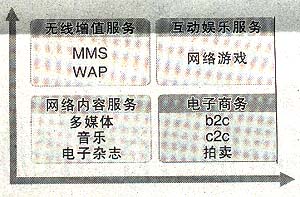 其中,互聯(lián)網(wǎng)及增值業(yè)務(wù)包括兩部分,核心業(yè)務(wù)主要是即時(shí)通信服務(wù),包括傳輸文本信息、圖像、視頻、音頻以及會(huì)員服務(wù)、號(hào)碼服務(wù)、電子郵件等;另外還有娛樂(lè)資訊門(mén)戶(hù)的建設(shè),包括向用戶(hù)提供新聞、體育、娛樂(lè)等多類(lèi)資訊,還包括游戲中心、交友中心、校友錄、電子賀卡等多種娛樂(lè)服務(wù)。
