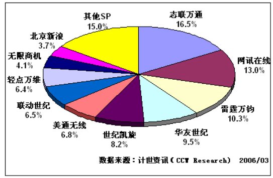 Research)認(rèn)為,隨著IVR市場管理的日益規(guī)范,各中小SP打檫邊球牟利的難度將越發(fā)困難,大型SP憑借品牌、資金、門戶的優(yōu)勢,對市場的影響力會越來越強(qiáng)。現(xiàn)有SP的集中程度將逐漸加大。