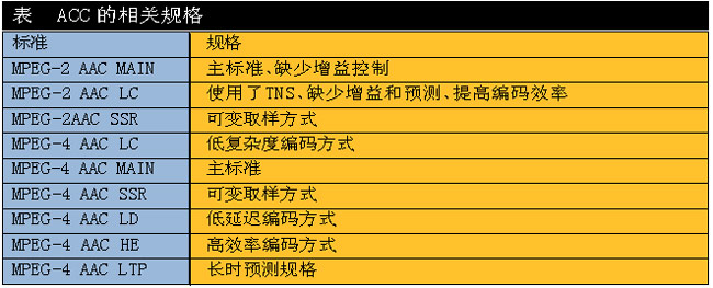 目前國際上對音頻處理技術(shù)上標(biāo)準(zhǔn)較多,在對下一代實(shí)時交互音頻處理上可以采用MPEG-1 Layer 2或AAC系列音頻,對選用標(biāo)準(zhǔn)的原則是,音頻頻響范圍要達(dá)到22kHz,這樣就幾乎可以覆蓋了人耳聽覺的全部范圍,甚至在高頻方面還有所超越,能夠使現(xiàn)場音頻得到真實(shí)自然的還原,并且在還原時可以采用雙聲道立體聲回放,使整個視頻通信的聲音有更強(qiáng)的臨近感,達(dá)到CD級音質(zhì)。同時在對鏈路帶寬的適應(yīng)和編解碼效率上達(dá)到最佳。附表列出了AAC的9種規(guī)格。