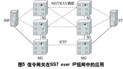 的 R4及R5中規(guī)定3G網(wǎng)絡采用軟交換體系進行組網(wǎng),各網(wǎng)元之間的媒體及信令都基于IP網(wǎng)進行承載。信令網(wǎng)關的出現(xiàn)使SS7 over IP成為可能,這樣做增加了信令帶寬,減小了對其它網(wǎng)絡資源的壓力。