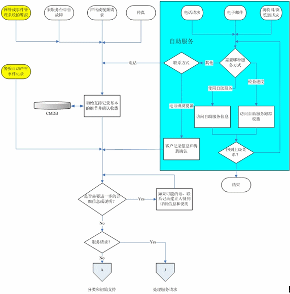 在記錄流程之后,事件將經(jīng)過分類和初始支持流程,而服務(wù)請求則被傳遞到“服務(wù)請求處理”流程。