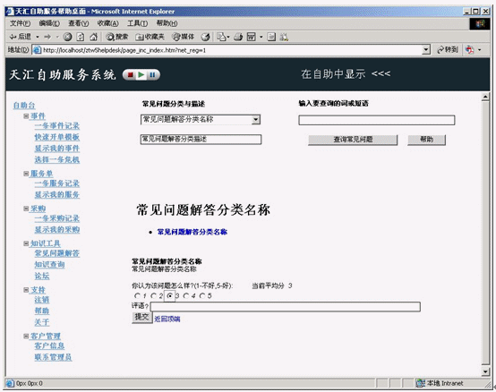 但是,隨著組織轉(zhuǎn)向自助服務(wù),對復雜維護過程的需要將隨之出現(xiàn)。如果要采用自助服務(wù),必須從一開始就做得很好。上圖為人性化的天匯幫助臺系統(tǒng)的自助服務(wù)功能界面設(shè)計。