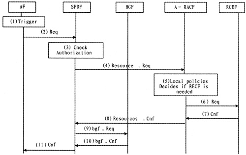 (4)如果業(yè)務(wù)請求被授權(quán),SPDF用本地策略和請求中攜帶的參數(shù)來決定怎樣處理請求。它可以發(fā)送Resource-Req給A-RACF,并發(fā)送bgf—Req給BGF;