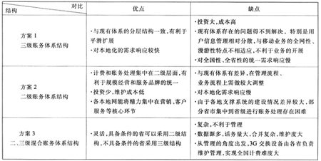 3G計費賬務(wù)體系結(jié)構(gòu)主要分為三級賬務(wù)體系結(jié)構(gòu)、二級賬務(wù)體系結(jié)構(gòu)和二、三級混合賬務(wù)體系結(jié)構(gòu)等幾種方式。各種賬務(wù)體系結(jié)構(gòu)對比見表1。