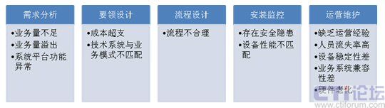 要領(lǐng)設(shè)計(jì)階段風(fēng)險(xiǎn):在該階段,企業(yè)將決定呼叫中心的建設(shè)規(guī)模、技術(shù)設(shè)備、組織架構(gòu)及運(yùn)營模式等一系列環(huán)節(jié)。此過程中,最容易且是最嚴(yán)重的風(fēng)險(xiǎn)在于成本估算的差異和技術(shù)系統(tǒng)與業(yè)務(wù)模式的不匹配。多數(shù)企業(yè)在呼叫中心建設(shè)成本估算時(shí)由于經(jīng)驗(yàn)的缺乏無法全面預(yù)測建設(shè)成本,特別是對運(yùn)營費(fèi)用的把握常常相差數(shù)倍。因此,實(shí)際建設(shè)成本過分超出預(yù)算成為困擾項(xiàng)目執(zhí)行者的一大難題。這就使得企業(yè)對呼叫中心的投入猶如一個(gè)無底洞,一投再投,嚴(yán)重影響了企業(yè)資金鏈的正常運(yùn)轉(zhuǎn),也為呼叫中心的“成本”角色加重了色彩。此外,很多公司或者系統(tǒng)集成商因?yàn)槌跏纪度氤杀、建設(shè)經(jīng)驗(yàn)或者運(yùn)營經(jīng)驗(yàn)等方面的限制,在呼叫中心建設(shè)初期很重視技術(shù)平臺的建設(shè),但忽視了運(yùn)營思想在系統(tǒng)方案中的體現(xiàn),在系統(tǒng)建成后,再去完善運(yùn)營系統(tǒng),這樣極大地增加了呼叫中心的運(yùn)營和管理成本,也影響到管理效率。