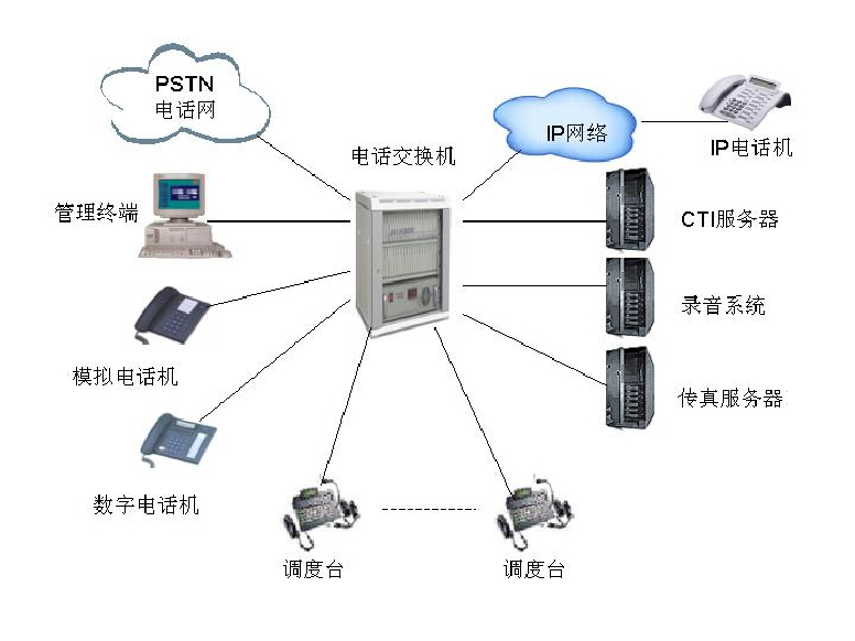 采用IP電話和程控交換機(jī)技術(shù),依托專用網(wǎng)絡(luò)和PSTN網(wǎng)絡(luò),利用該系統(tǒng)可即時(shí)與各專項(xiàng)指揮部之間組建電話會(huì)議。