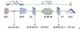 A口信令的第一段為MGW到BSC之間,是傳統(tǒng)的TDM方式,可以為高速鏈或低速鏈,物理承載類型為電口、光口均可,此時可以采用傳統(tǒng)的信令檢測方式。第二段為MSC到MGW之間的IP接口(sigtran接口),采用FE的底層傳輸方式,其信令帶寬一般為100M,此時必須采用IP接口的采集方式(即鏡像技術(shù))。從以上看出,由于目前的軟交換分離架構(gòu),鏡像采集點(diǎn)有兩個,可以是MGW側(cè),也可以是MSC側(cè)。