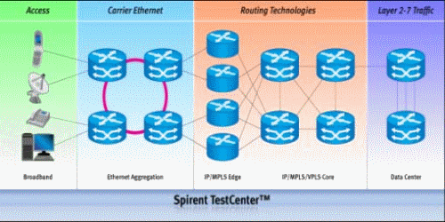 Spirent TestCenterTM給出了肯定的答案。它能仿真/還原一個(gè)真實(shí)的網(wǎng)絡(luò)應(yīng)用模型,幫助用戶構(gòu)建復(fù)雜的功能及場(chǎng)景測(cè)試需求,即接入認(rèn)證,L2/L3層交換,城域以太網(wǎng)仿真,路由仿真,MPLS/VPN,組播及IPTV,協(xié)議一致性,L4~L7應(yīng)用,測(cè)試基準(zhǔn)學(xué),VoIP測(cè)試等,Everything