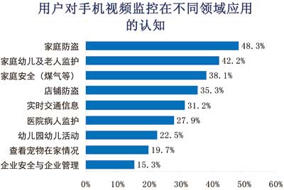 圖1用戶對(duì)手機(jī)視頻監(jiān)控應(yīng)用于不同領(lǐng)域的認(rèn)知