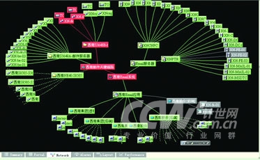 其次根據(jù)掌握的信息進(jìn)行建模。建模包括兩個(gè)方面,一是形成組件間的關(guān)聯(lián); 二是在關(guān)鍵組件上部署邏輯算法。邏輯算法也是根據(jù)業(yè)務(wù)邏輯和IT管理規(guī)則制定的。邏輯算法的應(yīng)用,極大地提高了根源問(wèn)題定位的效率和準(zhǔn)確性。以西南區(qū)域郵件系統(tǒng)為例,影響西南郵件的因素有三類(lèi): 服務(wù)器、郵件應(yīng)用協(xié)議和關(guān)鍵鏈路。通常,當(dāng)連接某臺(tái)服務(wù)器的關(guān)鍵鏈路中斷時(shí),相應(yīng)的服務(wù)器及其上的協(xié)議也會(huì)顯示異常狀態(tài)。我們會(huì)看到大量告警節(jié)點(diǎn)和信息,無(wú)法判斷故障的根本原因。通過(guò)在關(guān)鍵點(diǎn)上設(shè)置邏輯算法,當(dāng)發(fā)生上述異常時(shí),只讓發(fā)生故障的關(guān)鍵鏈路節(jié)點(diǎn)變紅,而讓受之影響的服務(wù)器和協(xié)議節(jié)點(diǎn)處于靜默狀態(tài)(灰色顯示),從而使IT管理人員能夠直觀快速地判斷出故障的根源所在(如圖所示)。