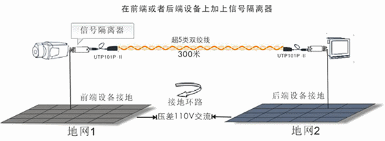 第二種方案是使監(jiān)控傳輸上的設(shè)備各點(diǎn)的相對(duì)地的電勢(shì)相同,一種方法是用一根導(dǎo)線把前端設(shè)備與后端設(shè)備的地連起來(lái),但導(dǎo)線本身也存在電阻,效果并不是非常好,并且還需另外布線,增加了工程的復(fù)雜性;第二種方法是采用屏蔽的雙絞線,可是必然會(huì)對(duì)視頻信號(hào)有損耗,從而縮短傳輸距離。