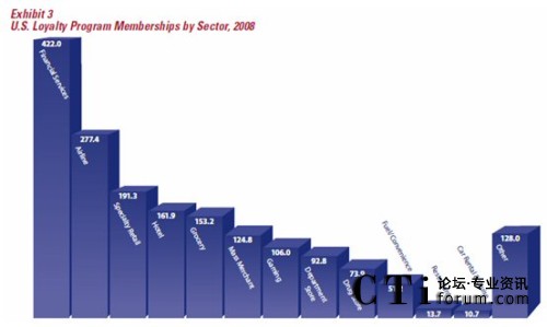 據(jù)權(quán)威的客戶忠誠度研究機(jī)構(gòu)COLLOQUY在2009出版的一份報告,2008年底,全美客戶忠誠度計劃的參與人次達(dá)到18.07億,平均每個美國家庭參與了14.1個忠誠度計劃,相較2006年底的13.41億參與人次,共增了了24.73%(連續(xù)兩年環(huán)比增長12%/年),而同期美國的GDP增長僅為2.2%。從這一點上看,美國企業(yè)對忠誠度營銷的熱情不減,盡管忠誠度營銷在美國已相當(dāng)成熟,但美國企業(yè)仍然把它當(dāng)作是營銷的重要工具。
