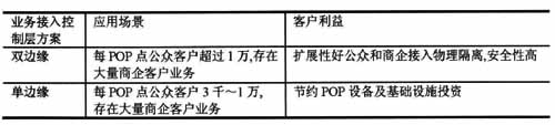 如采用多(雙)邊緣接入控制方式,需從終端起,在二層接入網(wǎng)絡中為每個用戶的每種業(yè)務部署不同的二層虛通道PV(/LVAC),將增加二層網(wǎng)絡的復雜性。為減輕復雜性,可采用單通道接入,再利用匯聚交換機具備的業(yè)務感知能力分離不同的業(yè)務。這種方式使不同的業(yè)務接入控制點之問,難以進行不同業(yè)務間的流量控制和協(xié)調(diào)。