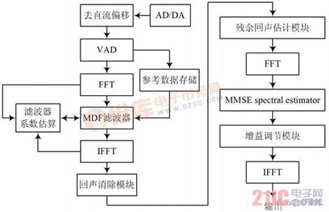 2.2 結(jié)合噪音消除和靜音檢測(cè)的回聲處理系統(tǒng)