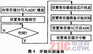 、坶_(kāi)始識(shí)別。設(shè)置幾個(gè)相關(guān)的寄存器,即可開(kāi)始語(yǔ)音的識(shí)別。圖4是相關(guān)的流程。ADC通道即為麥克風(fēng)輸入通道,ADC增益也就是麥克風(fēng)音量,可設(shè)定值00H~7FH,建議設(shè)置值為40H~6FH,值越大代表MIC音量越大,識(shí)別啟動(dòng)越敏感,但可能帶來(lái)更多誤識(shí)別;值越小代表MIC音量越小,需要近距離說(shuō)話才能啟動(dòng)識(shí)別功能,好處是對(duì)遠(yuǎn)處的干擾語(yǔ)音沒(méi)有反應(yīng)。本文中設(shè)定值為43H。