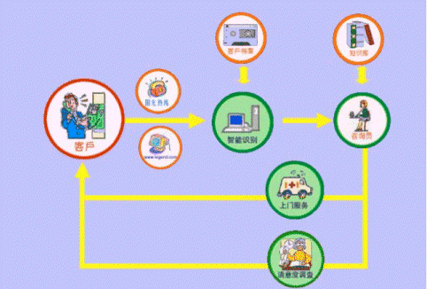 售后技術(shù)咨詢及報(bào)修:用戶購(gòu)機(jī)之后,同樣可以通過電話或者網(wǎng)絡(luò)進(jìn)入呼叫中心系統(tǒng),系統(tǒng)會(huì)通過用戶檔案庫(kù)得到用戶的詳細(xì)信息并為他尋找合適的咨詢員,咨詢員會(huì)依據(jù)共享的知識(shí)庫(kù)為用戶解決問題,如果用戶的機(jī)器需要上門服務(wù)。咨詢員會(huì)通過網(wǎng)絡(luò)查詢?nèi)珖?guó)服務(wù)渠道的工程師和備件情況,并安排工程師迅速上門為用戶服務(wù)。維修完成一天后,系統(tǒng)會(huì)自動(dòng)產(chǎn)生電話呼出,由咨詢員直接詢問用戶對(duì)服務(wù)過程的滿意程度,以便改進(jìn)我們的工作。