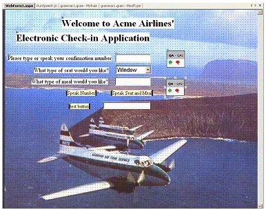 .NET Speech SDK是使用融語音及圖像等為一體的界面來構筑Web應用的開發(fā)環(huán)境。與該公司的開發(fā)工具--“Visual Studio .NET”配合使用。據微軟稱,其特點是即使開發(fā)人員不具備語音界面方面的特殊知識也能使用。比如,上圖就是正在使用.NET Speech SDK開發(fā)的可進行語音及鍵盤輸入的窗口。文字輸入框右邊的小框是使用SALT(語音應用語言標簽)語音相關命令的標記。目前,在支持語音功能的Web應用的開發(fā)中,必須使用面向圖形和面向語音的兩種開發(fā)工具!拔覀兊哪康氖翘峁┮粋使用一種工具就能開發(fā)包括圖形和語音的多種界面的環(huán)境”(該公司負責.NET Speech技術的市場營銷經理James Mastan)。