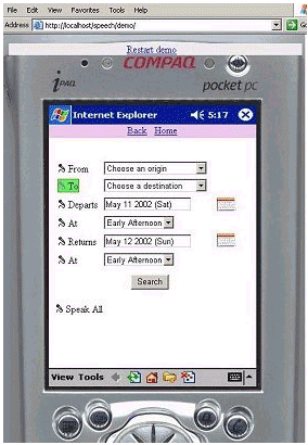 具有語音識別功能的、面向Pocket PC的應用的演示畫面