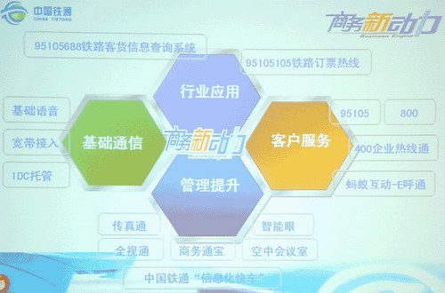 鐵通轉(zhuǎn)型的策略之一就是將鐵通的專業(yè)優(yōu)勢與市場需求結(jié)合,以“專業(yè)化、差異化”的方式服務鐵通客戶。鐵通將不斷完善并掌淥煊虻木,以丰富“蓾新动力′^哪諍6肼煲匣ザ獻鰲ⅰ癊呼通”的推出正是這一要求的具體體現(xiàn)。