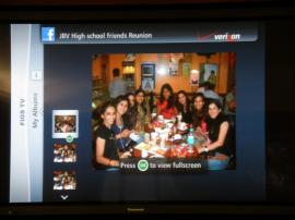 在Facebook窗件中,電視觀眾可以查看好友狀態(tài)更新,照片以及其他內(nèi)容。另外,由于電視機屏幕有利于觀看照片,Verizon官員表示,分享照片將成為Facebook電視窗件的一大應(yīng)用。另外和Twitter窗件不同,F(xiàn)acebook窗件可以向網(wǎng)站提交“用戶目前正在觀看的電視內(nèi)容”的更新,但無法提交其他文字內(nèi)容。