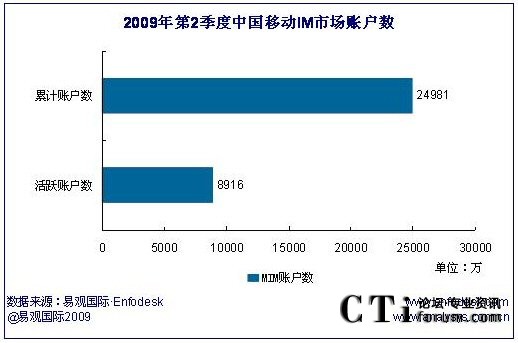 2009年第2季度中國移動(dòng)IM市場(chǎng)活躍賬戶數(shù)達(dá)8916萬