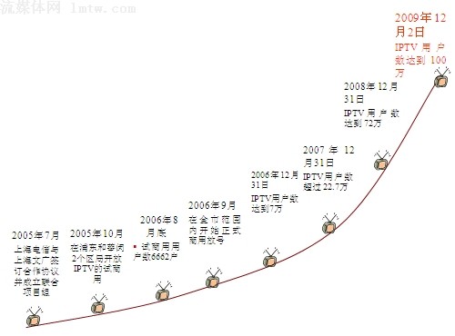 上海電信IPTV用戶12月3日突破百萬大關(guān),比原本預(yù)計(jì)的發(fā)展時間提前了近一個月。從2006年10月正式商用,發(fā)展到2009年12月,上海已經(jīng)成為全球最大的IPTV本地網(wǎng)并且是唯一用戶規(guī)模過百萬的城市。