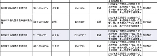經(jīng)四川省工商行政管理局官方網(wǎng)站查詢發(fā)現(xiàn),成都融特通信技術(shù)有限公司注冊(cè)人資本為100萬(wàn),法人為趙世洋。注冊(cè)信息顯示,成都融特通信技術(shù)有限公司及其關(guān)聯(lián)公司——重慶融特通信技術(shù)有限公司,其主營(yíng)業(yè)務(wù)為通信產(chǎn)品的技術(shù)開(kāi)發(fā)。而搜狐IT獲得的一份資料表明,成都融特通信技術(shù)有限公司目前仍然是中國(guó)聯(lián)通廣東、重慶、四川等省市的增值業(yè)務(wù)提供商,并于2009年第三季度因違規(guī),被中國(guó)聯(lián)通處罰,要求其進(jìn)行整改。