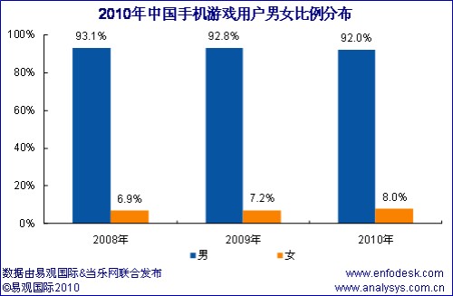 近期易觀國際、當(dāng)樂網(wǎng)聯(lián)合對手機游戲用戶進行調(diào)研,推出《中國手機游戲用戶研究報告2010》,從中國手機游戲用戶結(jié)構(gòu)特征和用戶行為方面分析手機游戲產(chǎn)業(yè)發(fā)展三大空間: