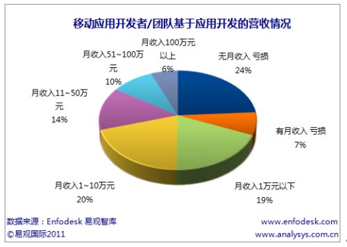 易觀國(guó)際(Analysys International)分析認(rèn)為應(yīng)用開發(fā)者難以獲取盈利分成的主要原因在于用戶對(duì)應(yīng)用本身沒有付費(fèi)下載習(xí)慣,應(yīng)用商店缺少對(duì)應(yīng)用的推廣,但應(yīng)用開發(fā)者難以盈利也和移動(dòng)應(yīng)用同質(zhì)化嚴(yán)重,難以被用戶認(rèn)可本身強(qiáng)相關(guān)。