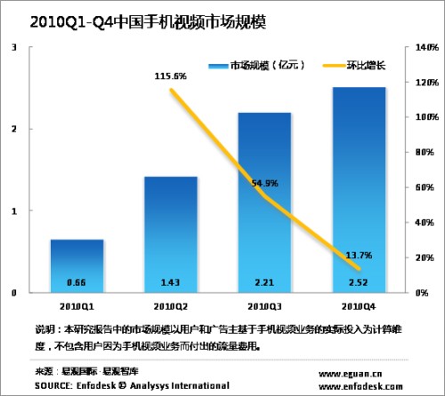 2010年中國手機視頻市場規(guī)模達6.81億元