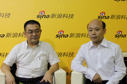 中國(guó)電信浙江公司副總經(jīng)理浦德松(左)與新浪科技主持人康釗(右)