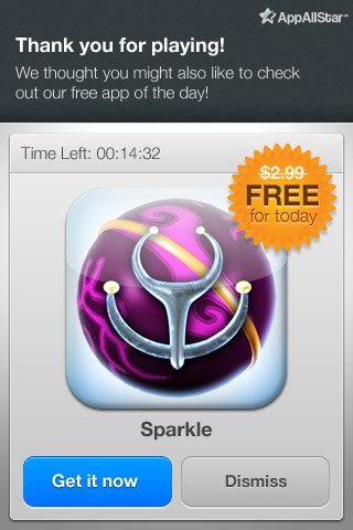 怎樣有效的將應用貨幣化呢?簡單的說,我們首先需要判斷當前用戶群的客戶終身價值,然后通過一系列方法使該價值得到持續(xù)的提升;這些方法包括“應用內”的普通廣告、產(chǎn)品體驗廣告、來自相同發(fā)布商的其他應用信息、相關增值產(chǎn)品與服務等。下圖所示的就是在應用中推銷另一款產(chǎn)品的典型案例。