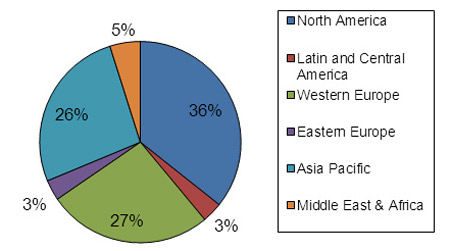 雖然直到目前為止,美國在LTE市場上一直占據(jù)主導(dǎo)地位,(而且這個(gè)狀況會一直持續(xù),因?yàn)锳T&T Mobility已經(jīng)發(fā)布LTE,而Clearwire, Sprint Nextel, T-Mobile USA 和其他公司也已經(jīng)準(zhǔn)備發(fā)布),其他地區(qū)LTE也準(zhǔn)備開始增長。