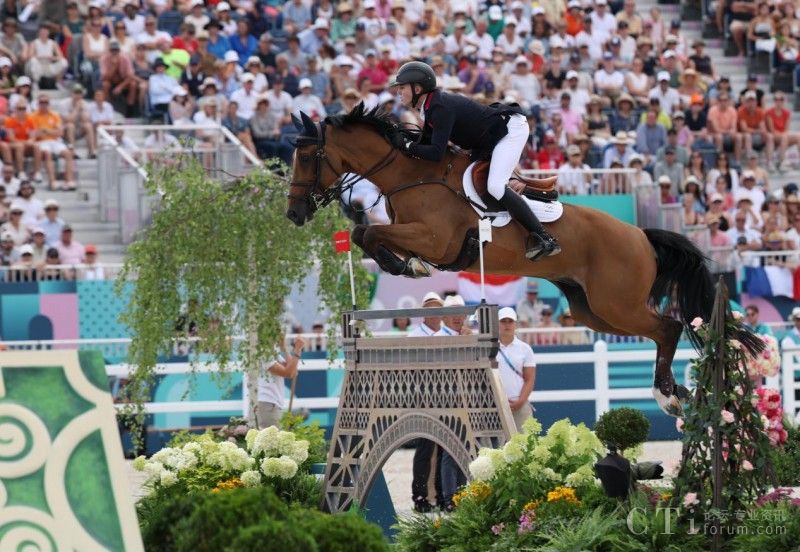 8月2日,英國(guó)隊(duì)選手查爾斯在比賽中。當(dāng)日,在巴黎奧運(yùn)會(huì)馬術(shù)團(tuán)體場(chǎng)地障礙大獎(jiǎng)賽決賽中,英國(guó)隊(duì)奪得金牌。新華社記者 楊磊 攝