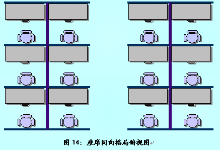 。。在此格局中,客服代表采用兩兩面面相對的方式進(jìn)行辦公,但位于同一側(cè)的客服代表是相同面向的。
