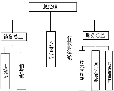 Z公司2002年之前的組織結(jié)構(gòu)如圖1所示,其中直接關(guān)系CRM的兩個(gè)崗位是銷(xiāo)售跟蹤崗與服務(wù)監(jiān)督崗。銷(xiāo)售跟蹤崗的主要職責(zé)是:客戶來(lái)人來(lái)電的接待,將有意向客戶的信息及時(shí)分配給公司業(yè)務(wù)員。服務(wù)監(jiān)督崗的主要職責(zé)是: 公司技術(shù)支持人員上門(mén)服務(wù)的及時(shí)性、服務(wù)質(zhì)量的每日監(jiān)督通報(bào)以及新用戶的培訓(xùn)效果、使用效果、服務(wù)滿意度的回訪。從表面上看,Z公司是一家管理規(guī)范、目標(biāo)責(zé)任明確的公司,而且在項(xiàng)目組深入了解Z公司后,也承認(rèn)它與同行相比確實(shí)是一家上佳的公司。