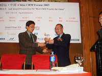 中國最佳CRM實(shí)施的授獎(jiǎng)儀式已在2003年CRM論壇·中國上如期舉行,共有300余人參加了本次論壇(北京,上海和深圳會場)。|