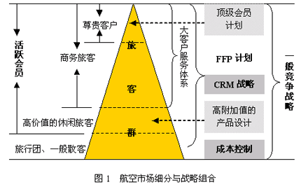 國內(nèi)主要航空公司都進一步明確了市場細分與戰(zhàn)略組合的關(guān)系,凸現(xiàn)“以客戶為中心”的經(jīng)營理念,如圖1所示。