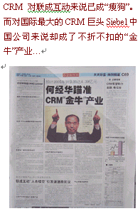 而此前Siebel在中國(guó)市場(chǎng)一直采取"大鯨不游淺水"策略,保持低調(diào),冷眼旁觀,并未投入大量人力財(cái)力在中國(guó)市場(chǎng),此次巨資籠絡(luò)何經(jīng)華,是否Siebel認(rèn)為中國(guó)CRM這個(gè)"淺池子"開(kāi)始加深了?