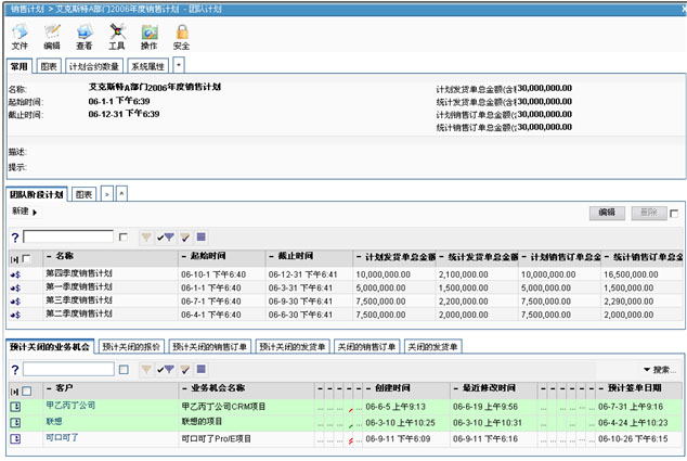 在銷售管理過程中,企業(yè)的高層決策基本上憑借管理人員的直覺下達指示,經常是難以達到量化的過程管理,無法有效控制銷售進展,成交率低下。對此,VamCRM銷售儀表盤針對各銷售階段的數據進行圖表顯示和量化標識,企業(yè)用戶可以非常清楚地知道自己正在跟進的客戶都分布在什么階段?哪個階段的客戶需要增加?哪個階段的客戶有待發(fā)展?……銷售儀表盤中包括:自定義時間段,監(jiān)控銷售進展情況的合約儀表盤;自定義時間段,進行銷售預測的合約預測儀表盤;自定義時間段,監(jiān)控團隊銷售進展情況的團隊儀表盤;自定義時間段,進行團隊銷售預測的團隊預測儀表盤;自定義時間段,考察線索挖掘情況的客戶線索儀表盤等。此外,在銷售計劃中集成銷售數據的統(tǒng)計與分析,可以將銷售計劃中對應的團隊或個人的計劃、預計和完成的銷售金額進行全面統(tǒng)計,將各階段的銷售業(yè)績進行量化比較分析。相應的公司高層也能參與銷售跟蹤的監(jiān)管和指導,在過程管理中及時發(fā)現問題,并給予解決。