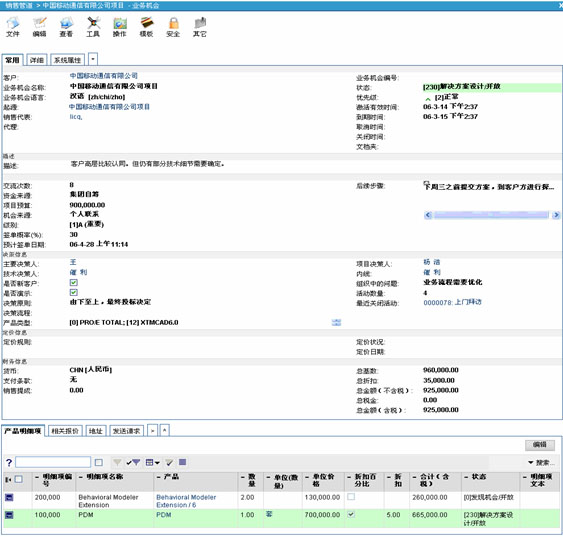 此外,VamCRM支持各銷售階段復雜的產品配置功能,可以為客戶出具復雜的產品方案;對于提供給客戶的單個產品價格可以靈活定制相對應的折扣信息,也可以直接計算相關的總體優(yōu)惠價格;所有銷售單據均支持多種貨幣,實現良好的跨地域應用。