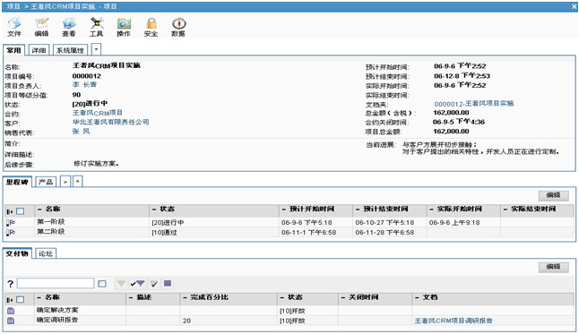 VamCRM提供專業(yè)的項目管理模塊,支持項目范圍管理、時間管理、資源管理、質量管理、成本管理。支持以銷售合約為驅動、過程清晰、全程受控的項目管理方式為客戶交付產品和服務。VamCRM融入成熟的項目管理方法和成功的實踐經驗,從整體上對項目進行規(guī)劃、組織、執(zhí)行、控制,使企業(yè)可以更加優(yōu)質地為客戶提供長期的服務。項目創(chuàng)建后,VamCRM系統(tǒng)會自動生成一個與當前項目相匹配的文件夾,為項目執(zhí)行過程中產生的交付物或項目的有關文檔提供統(tǒng)一的存檔位置;項目全程融合項目管理的方法,分里程碑管理項目活動和交付物,實時統(tǒng)計項目的關鍵數據,并且里程碑及所屬活動和交付物等都可分狀態(tài)量化標識,對項目進展做到實時監(jiān)控,避免了在項目實施中的“救火”行動和盲目發(fā)展。也可自動關聯(lián)記錄并統(tǒng)計所有項目進展過程中發(fā)生的預算與費用,實現項目費用清晰可控。伴隨著項目的進程,可以記錄所有在項目執(zhí)行過程中相關的聯(lián)系人、文檔、備忘錄等數據,形成完整的項目內容集合。項目中還包括基于項目的論壇,供項目組成員就項目的相關問題進行在線交流,同時,項目管理全程與企業(yè)高效協(xié)同的業(yè)務流程無縫集成,能夠使企業(yè)的相關部門以項目為導向,集中所有資源高效協(xié)同服務,大大降低項目執(zhí)行風險。