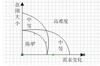 而處于一些成熟期的大型企業(yè),則剛好相反。他們經(jīng)過很多年的發(fā)展,管理制度已經(jīng)比較完善。為此需求比較固定,變化不多很多。但是他們有一個特點(diǎn),就是項(xiàng)目所涉及到的范圍會非常的大。如可能會涉及到多個分公司、銷售辦事處等等;其需要集成的外部信息化系統(tǒng)也會很多。由于項(xiàng)目范圍的增大,顯然就增加了項(xiàng)目的難度。由于這個項(xiàng)目范圍往往是用戶決定的,而且實(shí)施顧問也希望這個范圍越大越好,如此的話,可以賺取更多的利潤。此時為了減少項(xiàng)目的難度,適時顧問就必須要讓需求確定下來。雖然由于制度比較完善,需求的變化率可能比較低。但是需求的絕對數(shù)量增加了,即使需求的變化率比較低,需求的變化的相對數(shù)量仍然會比較高。為此遇到這種情況時,實(shí)施顧問在需求調(diào)研階段,要多花一點(diǎn)心思,確保需求確認(rèn)下來之后,不要再進(jìn)行過多的更改。從而讓項(xiàng)目處于一個“中等級別”的難度。
